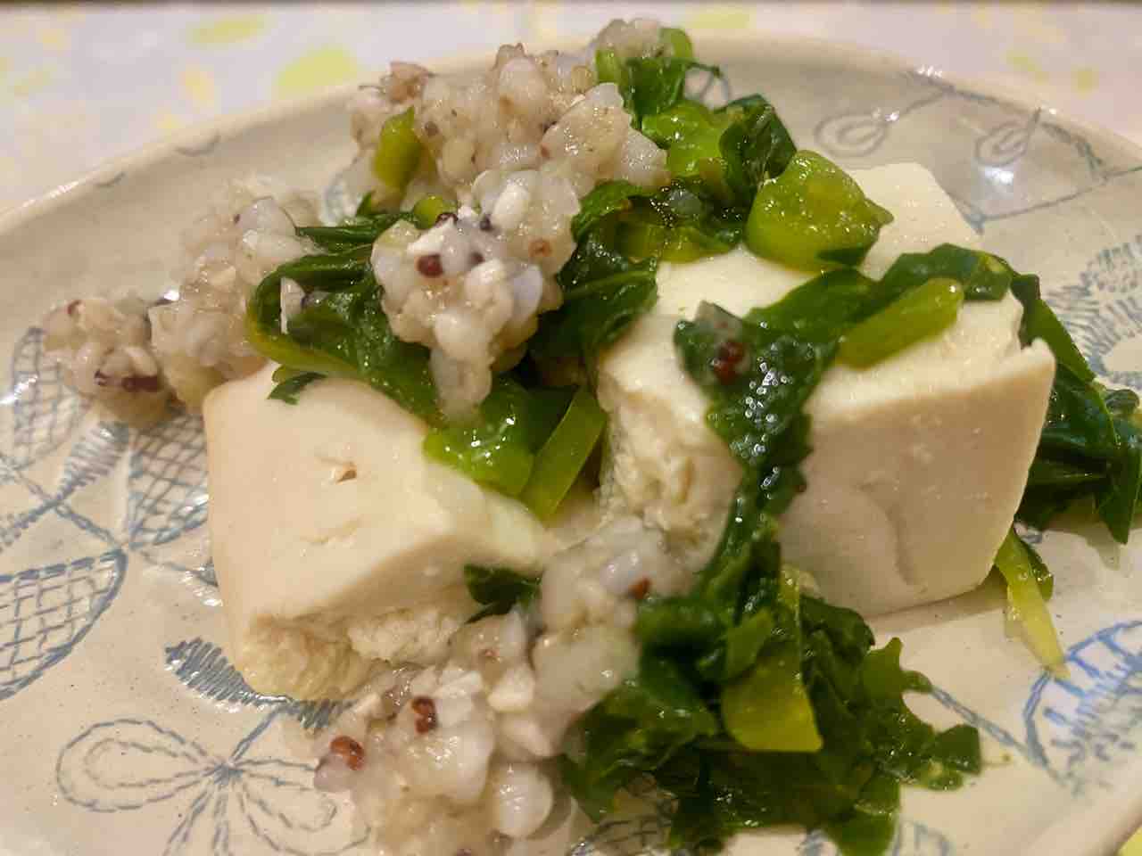 つるむらさきのお豆腐・インド雑穀がけ~♪