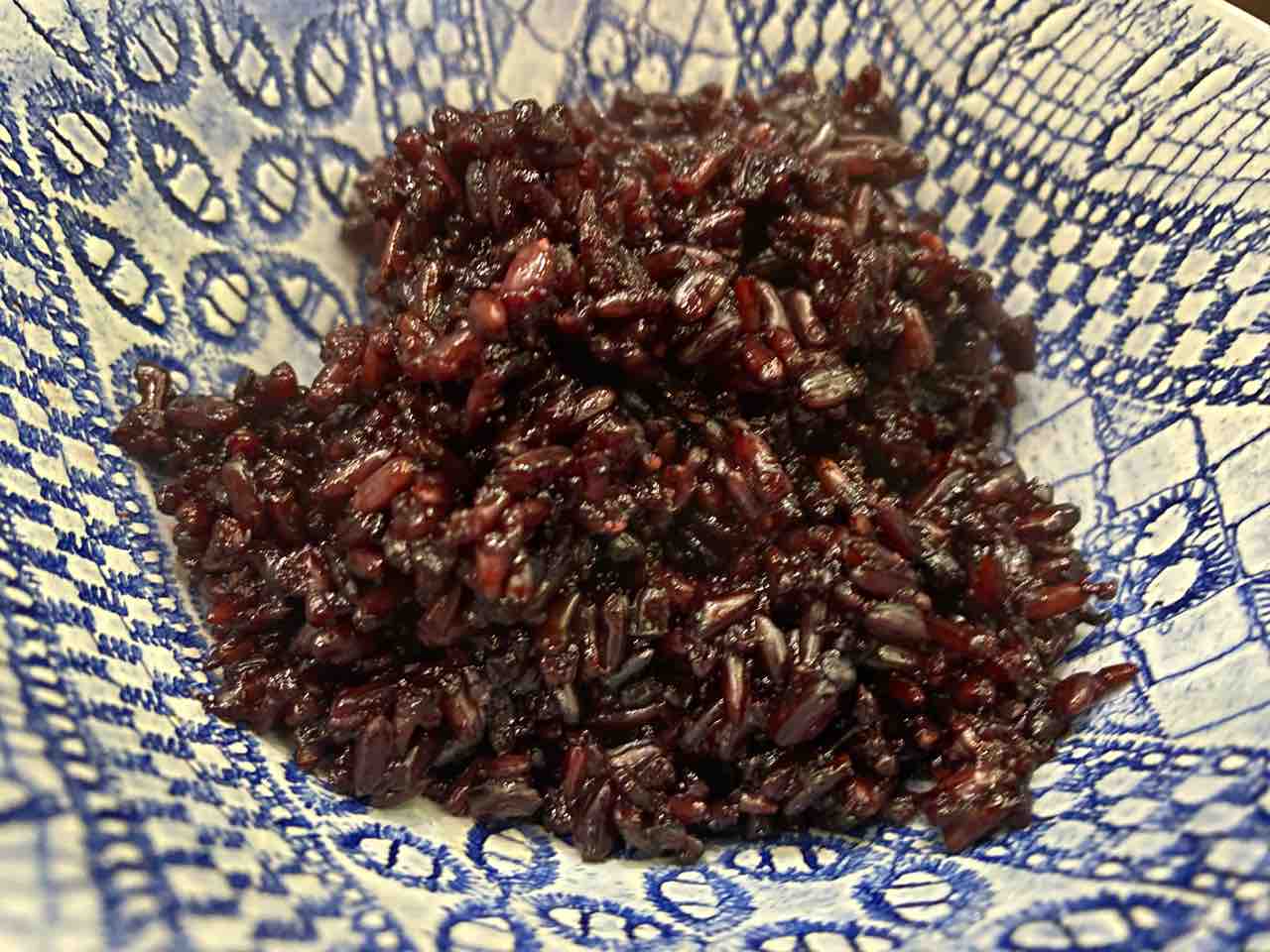 インド東北マニプールの黒餅米をタイ東北イサーンの料理、ラープ・ムー(豚ひき肉サラダ)と合わせてみたかったのです。