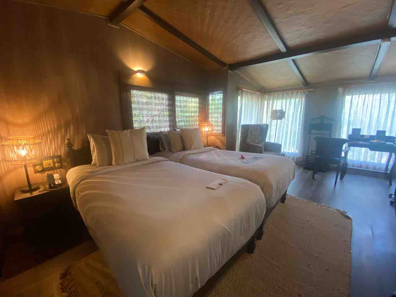 自然いっぱいで空気は綺麗。室外アクティビティやスパもあり、楽しくてリラックスできる宿泊施設なんだけど、お食事はど直球インド。