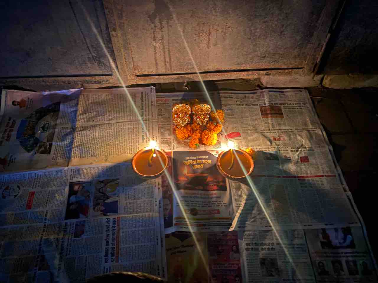 年々煌びやかに、また更に洗練されていくディワリライトアップですが、やっぱりこぢんまりしていても、本物の炎の方がジィんとします。