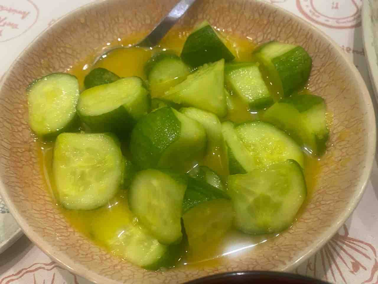 きゅうりは辛子ニンニク味覇和え。