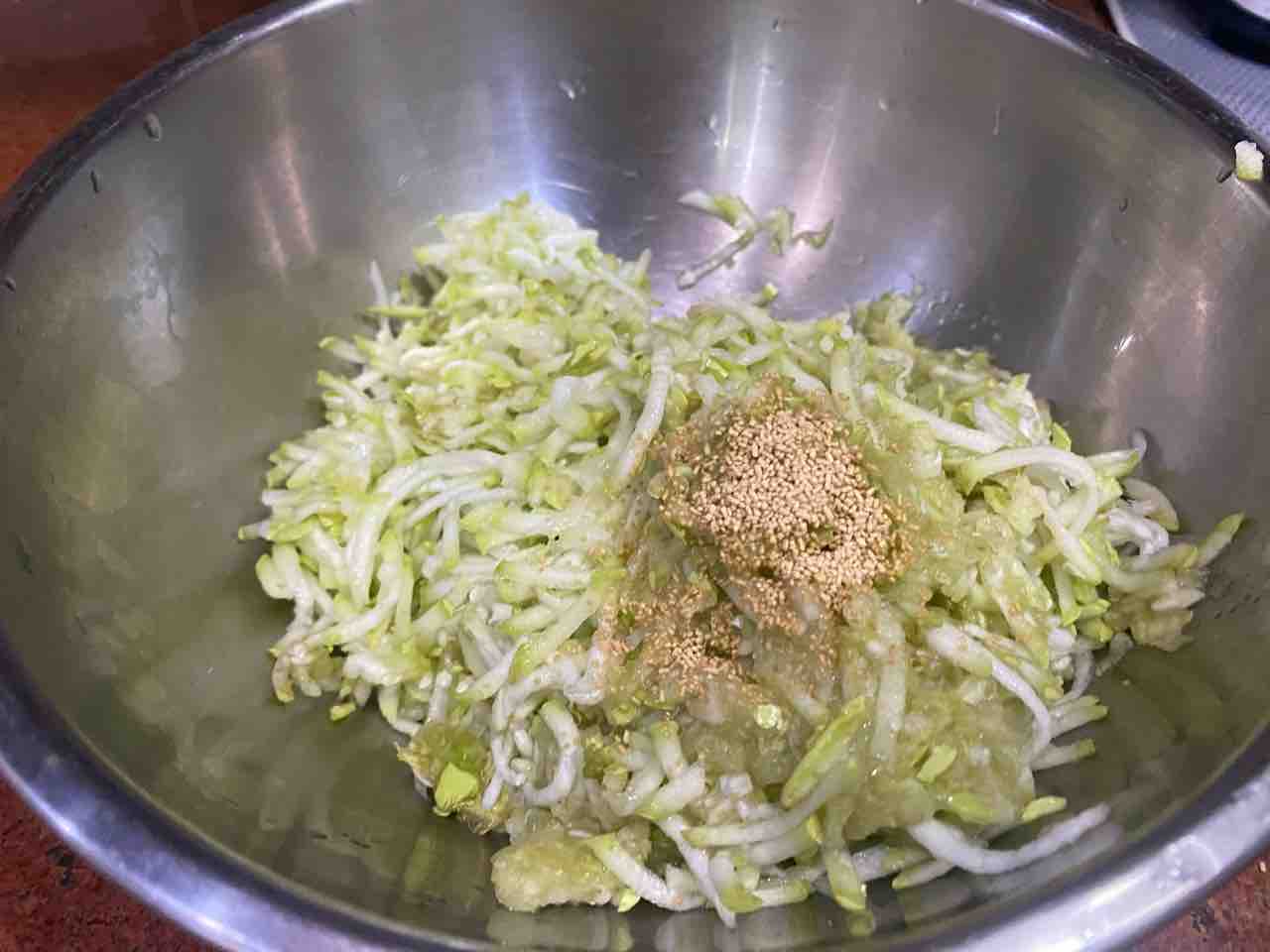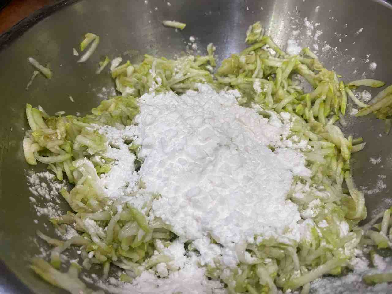 千切りすりおろしにして、水切り後、片栗粉を合わせてお団子にしてラップに包み、レンチン。
