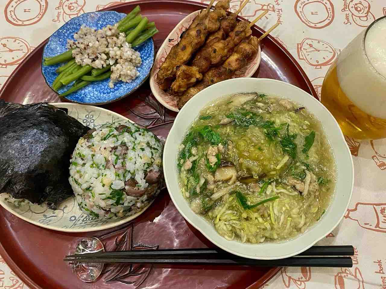 むっちゃ「和味」です。賞味期限大幅切れの乾海苔を利用。そして今年も咲いてくれた韮の花をどっさり☺️。淡い韮香がたまんない。
