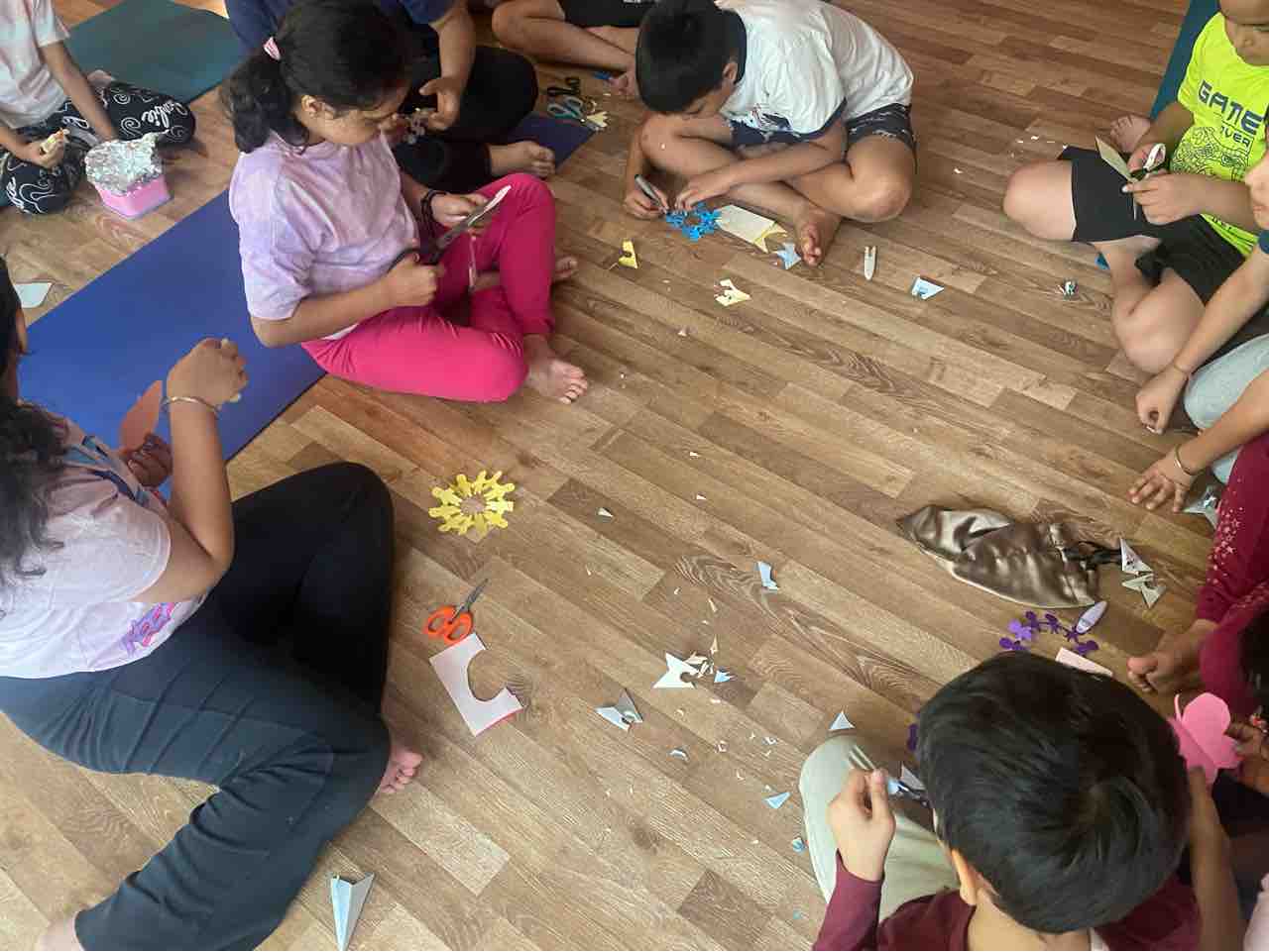 昨日のアクティビティは「切り紙」。4歳から10歳まで13人と、年齢差があるので準備が大変だったけど、いざ始まってみるとレベルの差はあるものの、みんな集中して作業してくれました。